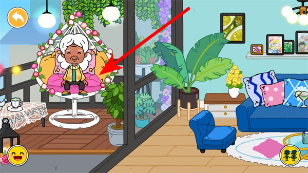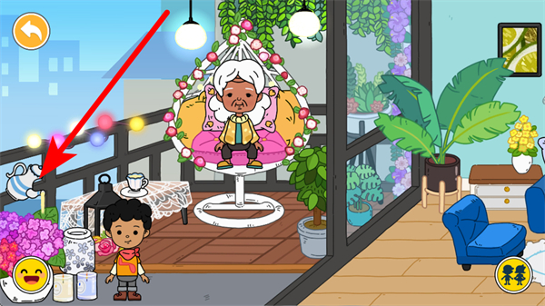 3、來到陽臺區(qū)域,有裝飾精美的吊椅,讓角色坐上吊椅,能模擬悠閑休憩的狀態(tài),感受愜意樂趣。