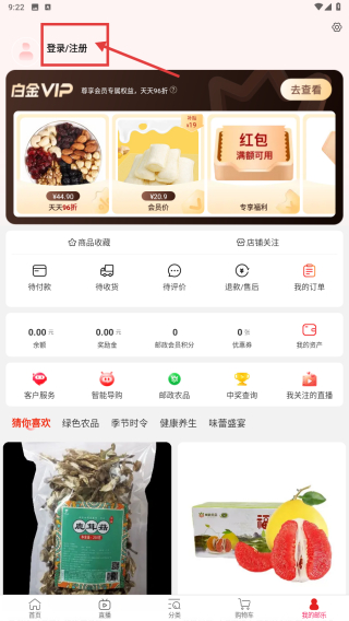 2、在個(gè)人中心頁(yè)面,點(diǎn)擊登錄/注冊(cè)區(qū)域,進(jìn)入登錄選擇界面。