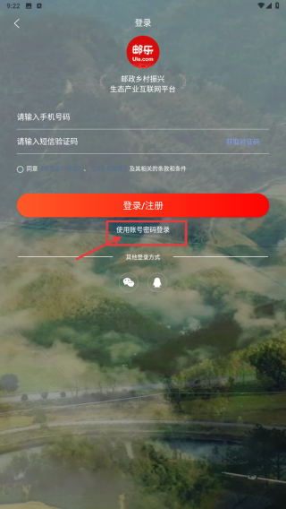 3、在登錄選擇界面,點(diǎn)擊使用賬號(hào)密碼登錄選項(xiàng),進(jìn)入賬號(hào)密碼登錄界面。