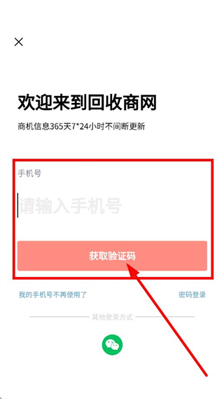 3、在登錄頁面,輸入手機(jī)號后,點(diǎn)擊獲取驗(yàn)證碼,獲取驗(yàn)證碼。