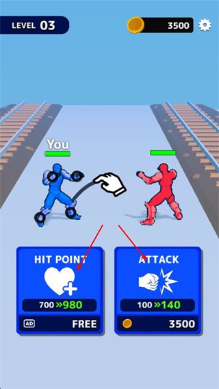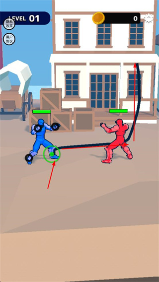 2、戰(zhàn)斗中,成功攻擊對手可積累打擊次數(shù),消耗對手生命值,直至將其擊敗,獲取金幣獎勵。