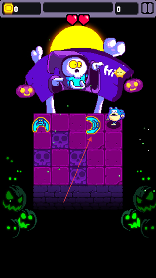 3、利用收集到的道具,繼續(xù)按照箭頭指示的路線在磚塊區(qū)域移動(dòng),躲避障礙物。