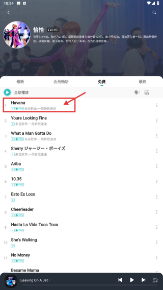 3、在恰恰舞音樂列表中,選擇Havana音樂,進(jìn)入播放頁面。