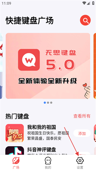 1、在快捷鍵盤廣場頁面,點擊底部設(shè)置,進(jìn)入設(shè)置相關(guān)頁面。