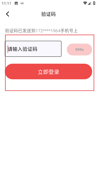 5、在驗證碼輸入頁面,輸入收到的驗證碼,點擊立即登錄,完成注冊操作。