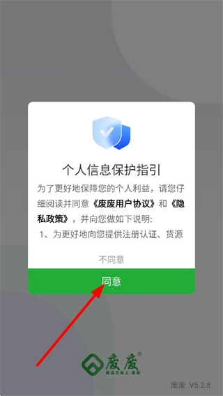 1、在個(gè)人信息保護(hù)指引彈窗中,點(diǎn)擊同意,進(jìn)入APP首頁(yè)。