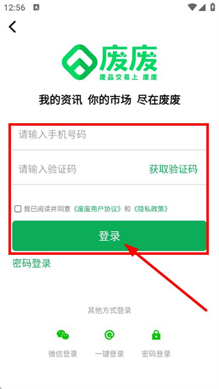 4、輸入手機(jī)號(hào)碼,獲取并輸入驗(yàn)證碼,點(diǎn)擊登錄,完成登錄操作。