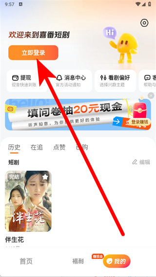 1、打開喜番短劇,點(diǎn)擊頁面底部的我的。