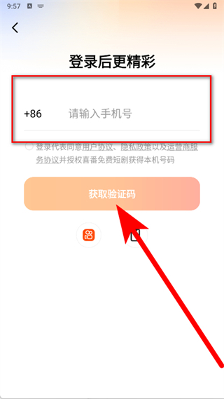 3、在登錄頁面,輸入手機(jī)號(hào),點(diǎn)擊獲取驗(yàn)證碼。