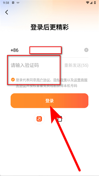 4、輸入收到的驗(yàn)證碼,接著點(diǎn)擊登錄,完成注冊(cè)。
