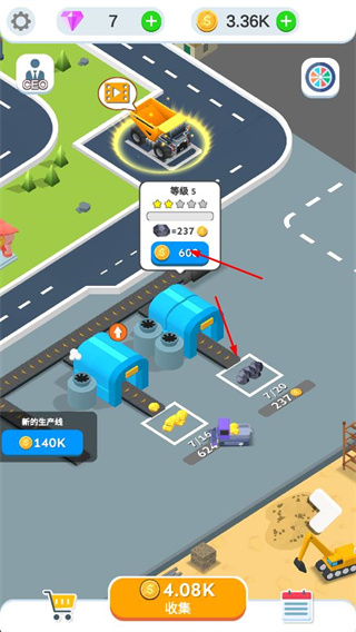 1、在工廠場(chǎng)景中,操作卡車(chē)運(yùn)輸資源,升級(jí)卡車(chē)等級(jí)可提升收益,這是積累金幣的關(guān)鍵操作,助力工廠發(fā)展。