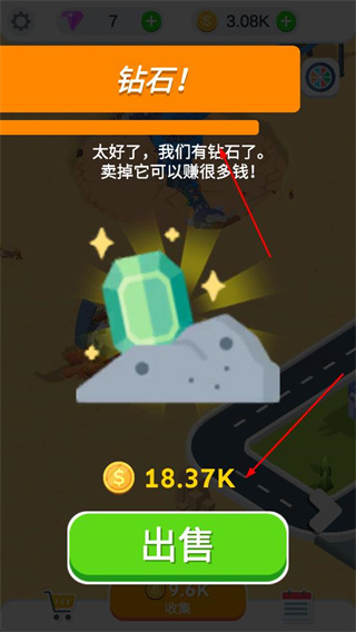 4、挖掘到鉆石后,點(diǎn)擊出售獲取高額金幣,朝著打造高效盈利工廠的目標(biāo)努力。