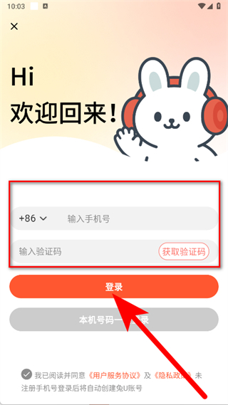 4、在登錄頁(yè)面,輸入手機(jī)號(hào)和驗(yàn)證碼,點(diǎn)擊登錄,完成注冊(cè)。