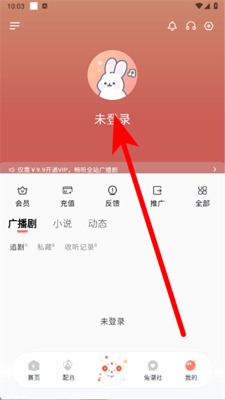 3、在我的頁(yè)面,點(diǎn)擊未登錄區(qū)域,進(jìn)入登錄頁(yè)面。