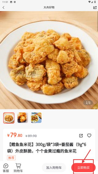 3、在休閑零食商品列表中,找到鱈魚魚米花商品,點(diǎn)擊進(jìn)入詳情頁。