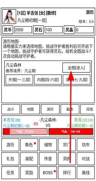 1、在游歷系統(tǒng)里,能選擇凡塵森林等地圖進(jìn)入,挑戰(zhàn)守護(hù)者勝利后可開啟新地圖,還能獲取靈石,掛機(jī)全圖戰(zhàn)斗也有獎(jiǎng)勵(lì)。