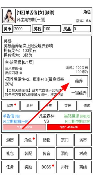 3、在角色界面,可對(duì)靈根進(jìn)行蘊(yùn)養(yǎng),消耗靈石和修為,能提升靈根屬性與觸發(fā)特殊效果的概率,增強(qiáng)角色能力。