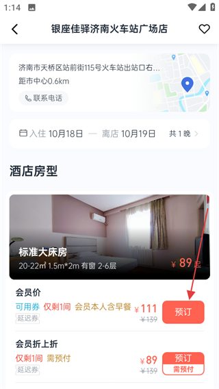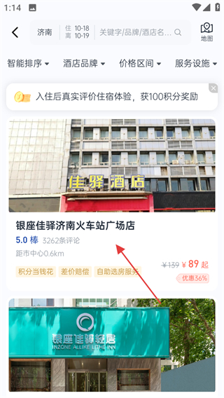2、選擇心儀的酒店,如銀座佳驛濟南火車站廣場店,進入該酒店詳情頁面。