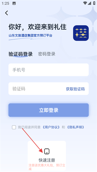 3、在登錄頁面,若為新用戶,點(diǎn)擊快速注冊(cè),進(jìn)入新用戶注冊(cè)頁面。