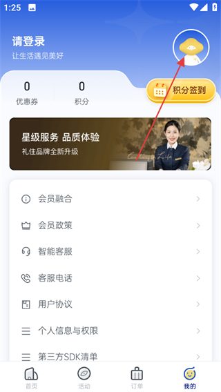 1、進(jìn)入禮住,在首頁點(diǎn)擊底部我的,進(jìn)入個(gè)人頁面。