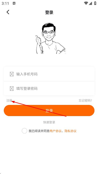 3、在登錄頁面,點擊注冊,進入賬號注冊頁面。