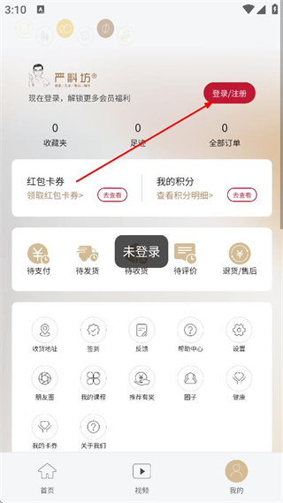 2、在個人頁面,點擊登錄/注冊,進入登錄頁面。