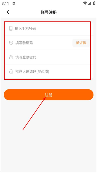 4、輸入手機號碼、驗證碼、登錄密碼,點擊注冊,完成賬號注冊操作。