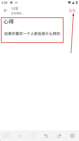 3、在內(nèi)容編輯頁(yè)面,輸入標(biāo)題和內(nèi)容后,點(diǎn)擊右上角發(fā)布,發(fā)布內(nèi)容。