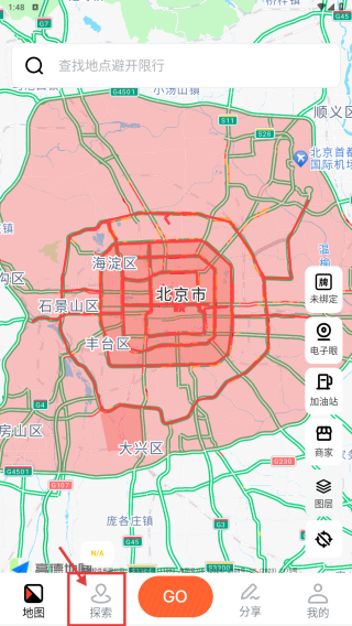 1、打開地圖導(dǎo)航類應(yīng)用,點(diǎn)擊底部探索選項(xiàng),進(jìn)入探索板塊。