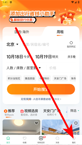 1、打開螞蟻短租,點擊頁面底部的我的。