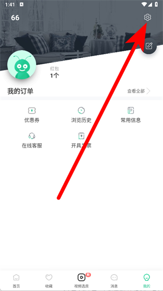 2、在我的頁面,點擊右上角的設(shè)置圖標。