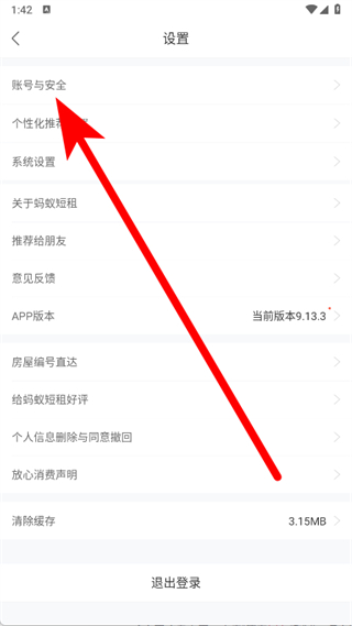 3、進入設(shè)置頁面后,點擊賬號與安全選項。