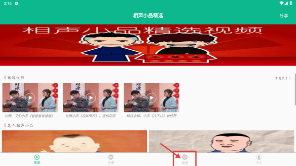 1、打開多媒體類應(yīng)用,點擊底部動態(tài)選項,進入動態(tài)板塊。
