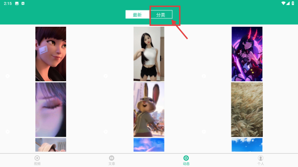 2、在動態(tài)頁面,點擊分類標簽,切換到分類篩選界面。