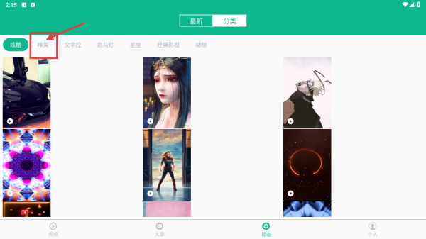 3、在分類篩選界面,點擊唯美分類標簽,篩選唯美類動態(tài)內(nèi)容。
