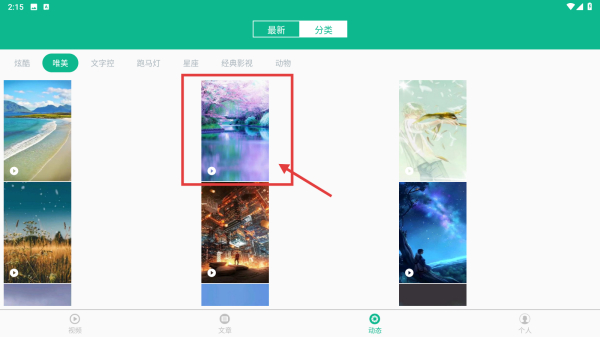 4、在唯美類動態(tài)內(nèi)容列表中,選擇櫻花主題的動態(tài)內(nèi)容,點擊進入查看詳情。