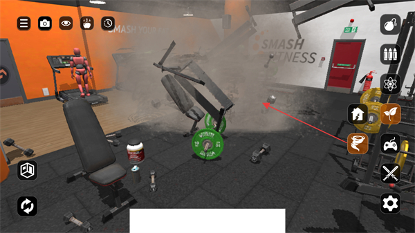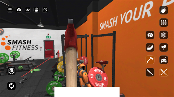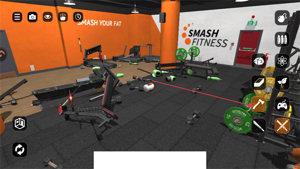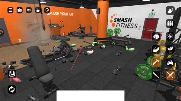 2、持續(xù)使用道具對健身房內(nèi)各類物品,如啞鈴、杠鈴等,進行肆意砸擊,制造混亂場面。
