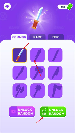 4、在武器界面,消耗金幣解鎖普通、稀有、史詩級(jí)武器,朝著擊敗更多敵人、通關(guān)更多關(guān)卡的目標(biāo)努力。