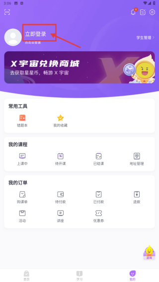1、打開教育類應(yīng)用,點(diǎn)擊底部我的選項(xiàng),進(jìn)入個(gè)人中心頁面。