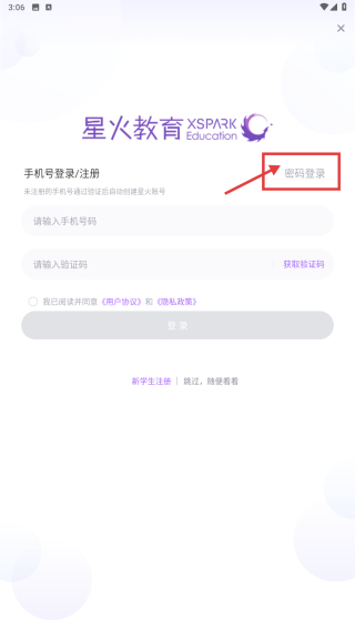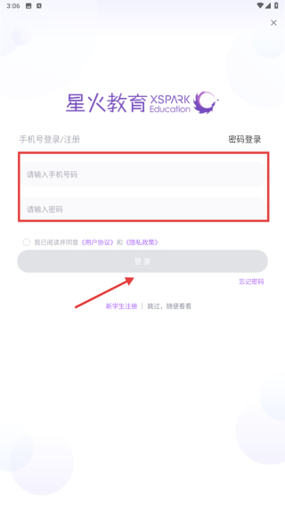 4、在賬號(hào)密碼登錄頁面,輸入手機(jī)號(hào)碼和密碼,點(diǎn)擊登錄按鈕,完成賬號(hào)登錄操作。