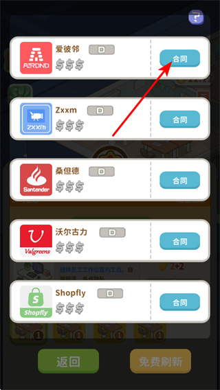 1、開啟招租流程,點擊辦公室內的招租標識,進入租戶選擇界面,開始為辦公室尋找合適的租戶。