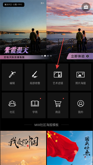 1、進入mix濾鏡大師,點擊藝術濾鏡,進入藝術濾鏡選擇頁面。