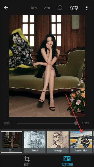 3、在照片濾鏡編輯頁面,選擇喜歡的濾鏡效果,如DesertSky。