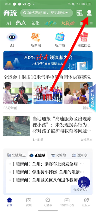 1、打開(kāi)掌上蘭州,點(diǎn)擊頁(yè)面右上角的頭像圖標(biāo)。