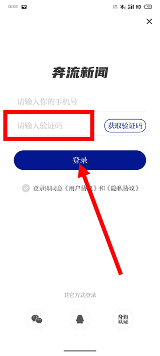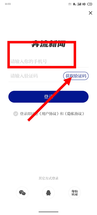 3、進(jìn)入登錄頁(yè)面后,輸入手機(jī)號(hào),點(diǎn)擊獲取驗(yàn)證碼。