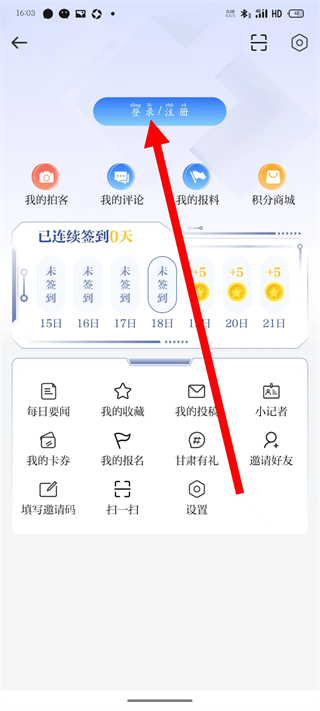 2、在個(gè)人相關(guān)頁(yè)面中,點(diǎn)擊登錄注冊(cè)按鈕。