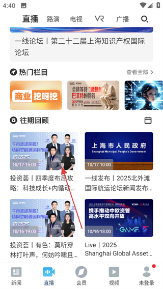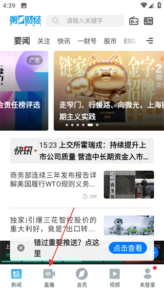 1、進(jìn)入第一財(cái)經(jīng),在首頁點(diǎn)擊底部直播,進(jìn)入直播頁面。