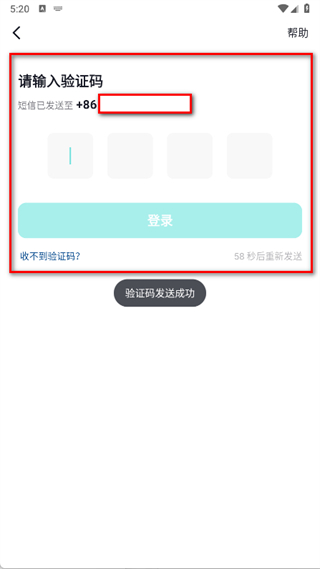 4、在輸入驗證碼頁面,輸入收到的驗證碼,點擊登錄。