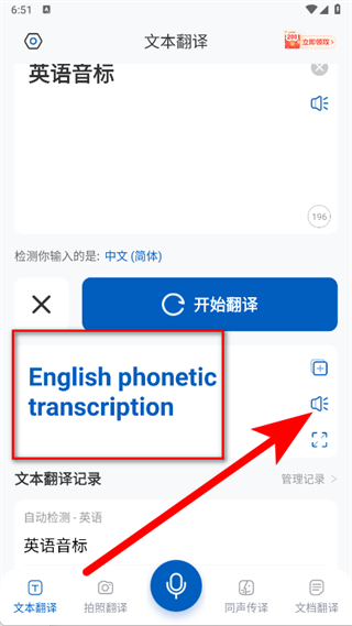 3、翻譯完成后,點(diǎn)擊翻譯結(jié)果旁的喇叭圖標(biāo),播放譯文語(yǔ)音。
