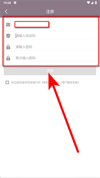 4、在注冊頁面的輸入框中,輸入自己的郵箱地址,點擊獲取驗證碼按鈕。